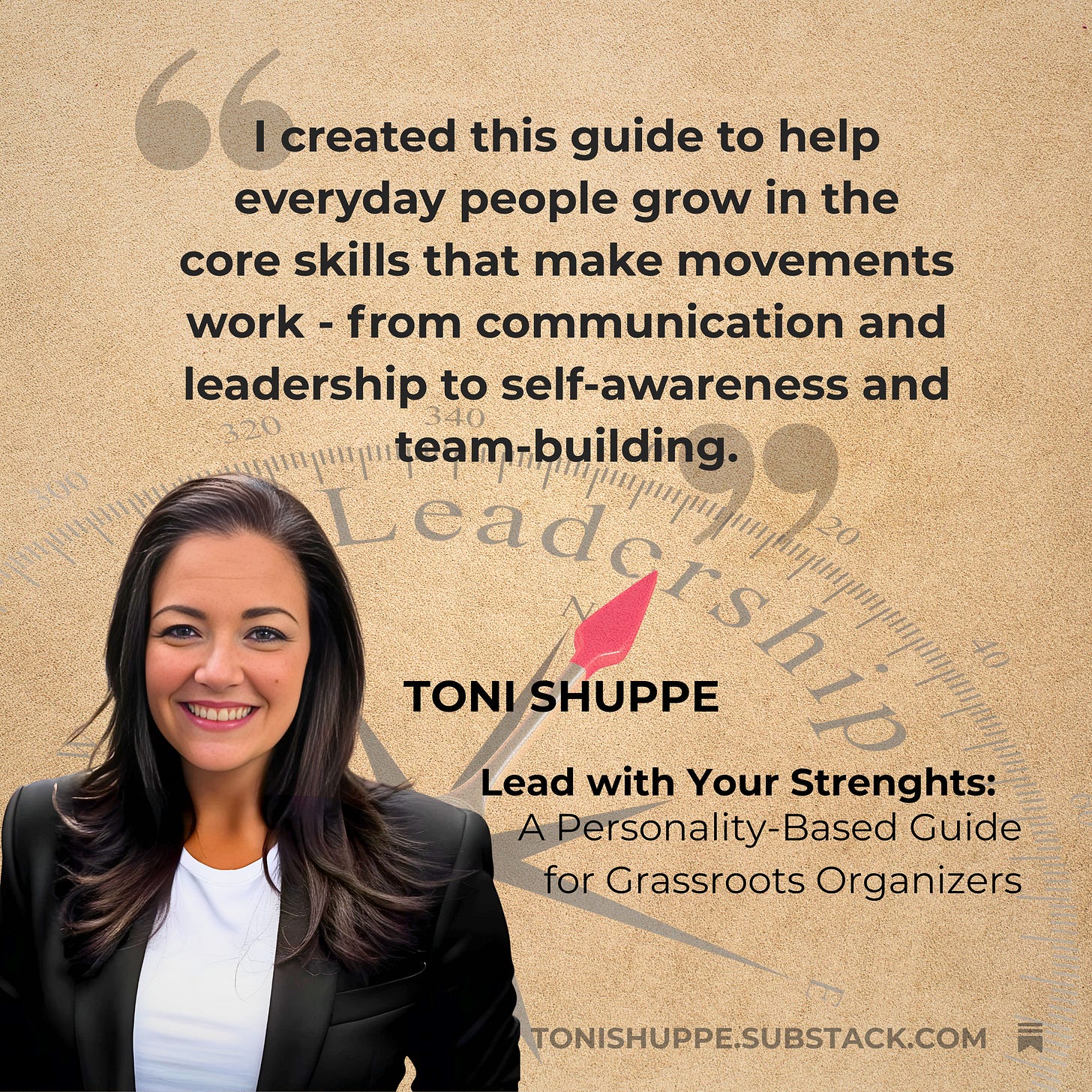 It’s called Lead With Your Strengths: A Personality-Based Guide for Grassroots Organizers—a tool designed to help you understand how you’re wired, where you thrive, and how to lead more effectively in your role. It's part quiz, part training guide, part survival kit.