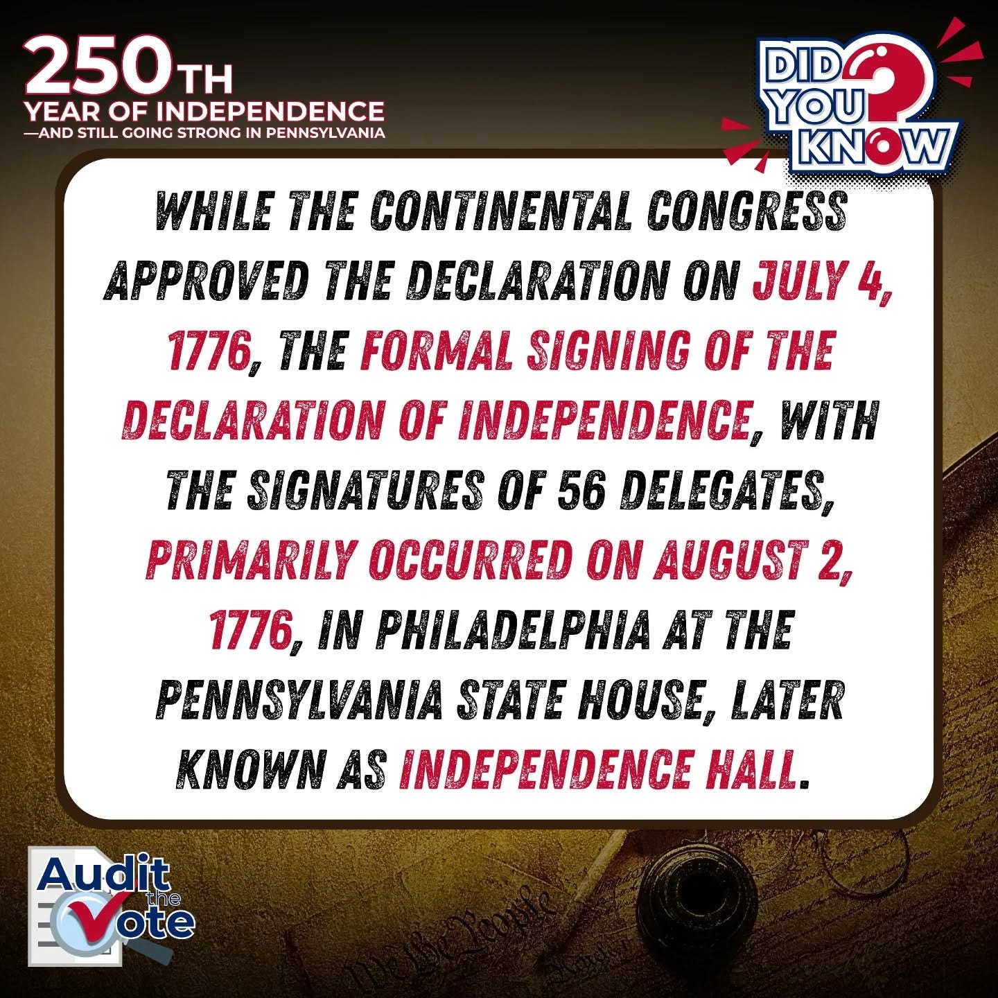 đ As we celebrate 250 years of American independence here in Pennsylvania, letâs recommit ourselves to the real spirit of 1776: informed, courageous, and willing to stand when it matters most.
