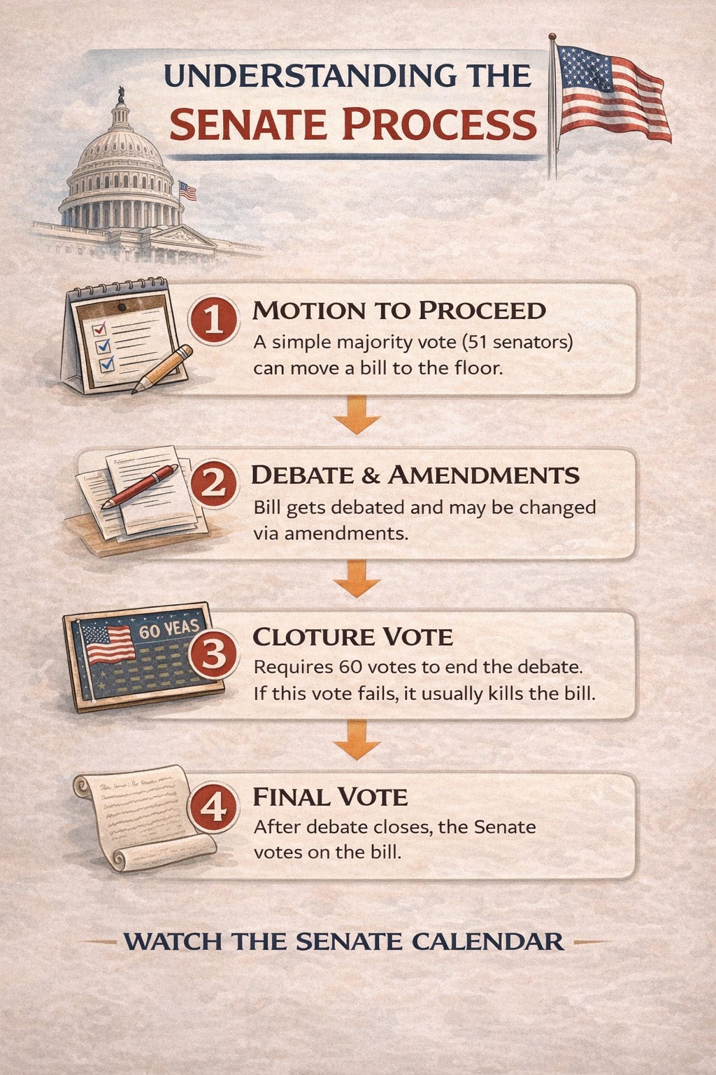 The Senate is built around minority rights and unlimited debate, which means there are a lot of procedural tools that can slow down—or quietly kill—legislation.